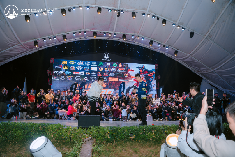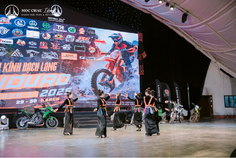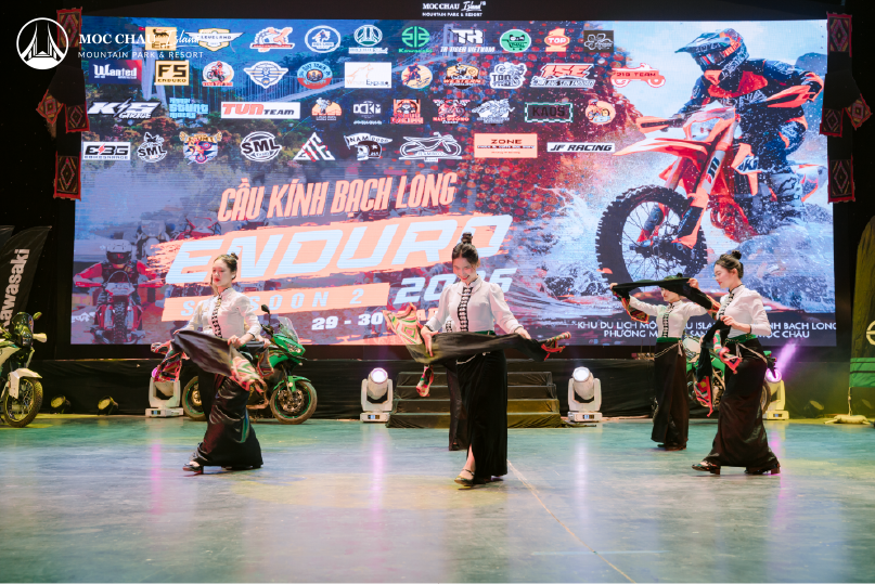 Không chỉ dừng lại ở tốc độ, giải đấu còn là dịp để giao lưu văn hóa với những màn múa dân tộc truyền thống đặc sắc. Trong không gian hùng vĩ của Mộc Châu Island, những điệu múa xòe, múa sạp hòa quyện cùng ánh lửa bập bùng đã tạo nên một đêm hội ấm cúng, kết nối những trái tim yêu thể thao và văn hóa bản địa.