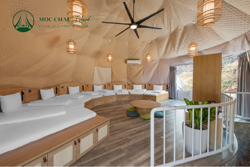 Bên cạnh không gian lễ hội ấm áp, Mộc Châu Island còn mang đến trải nghiệm nghỉ dưỡng – giải trí trọn vẹn với hệ thống phân khu lưu trú đa dạng và thế giới trò chơi hiện đại.